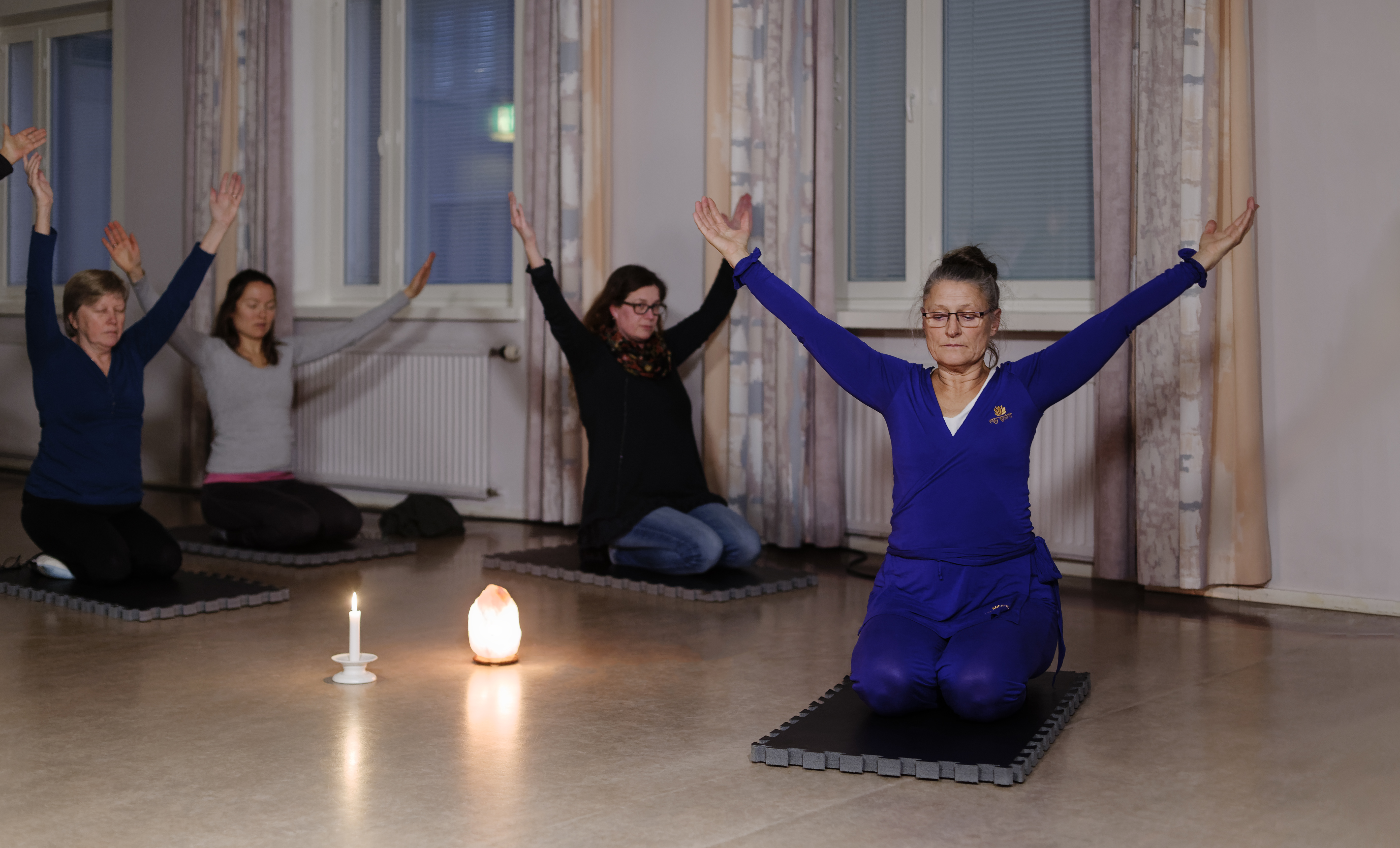 Ta med yogamatta, kuddar, filt och vattenflaska.