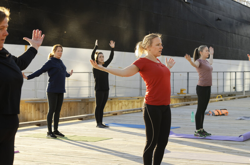 Härlig helkroppsträning, du får upp flåset och musklerna får jobba. Alla övningar går att anpassa.