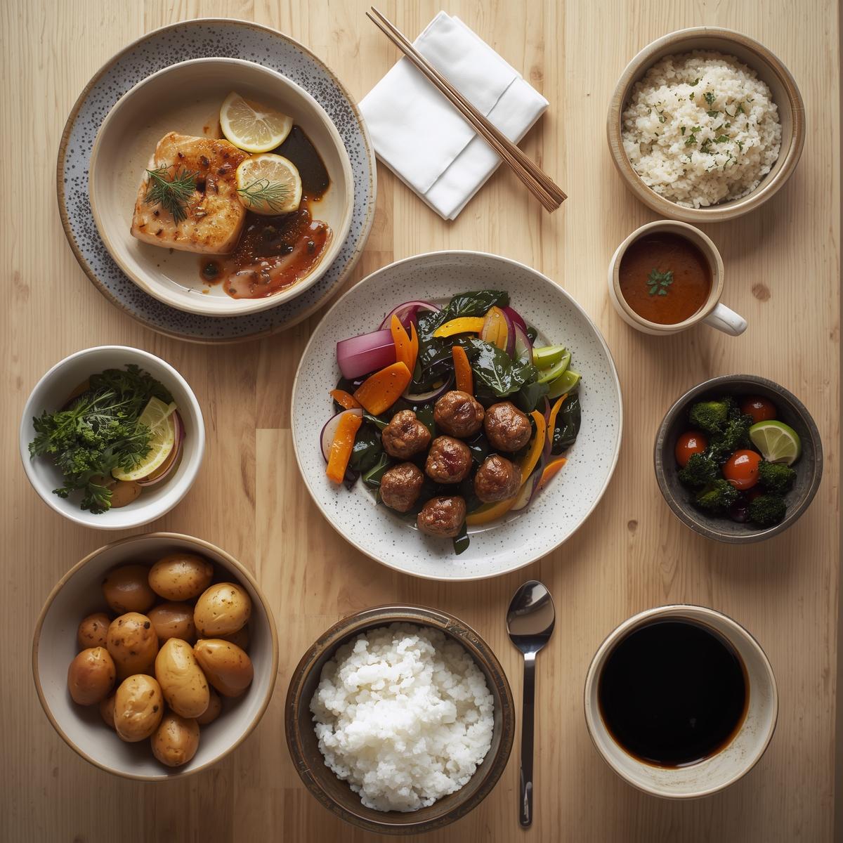 Rätterna kan bli antingen med kött eller fisk med grönsaker och ris.