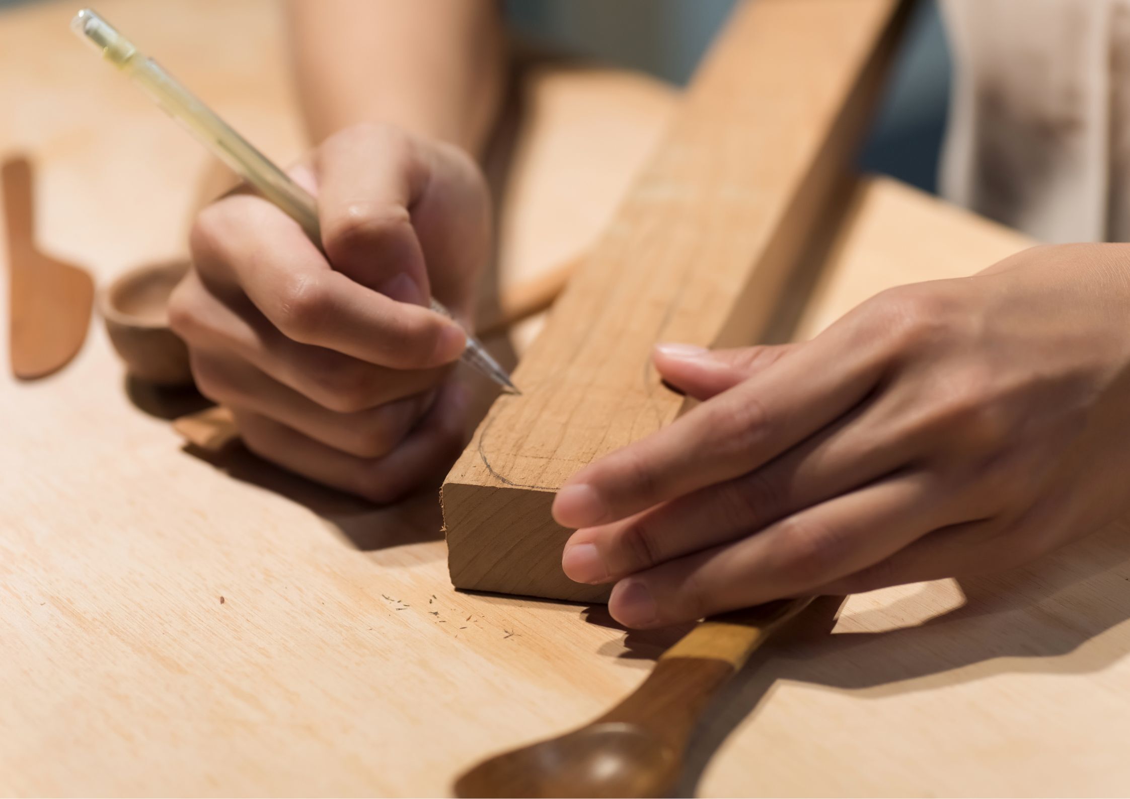 Den som vill kan snida smörknivar, salladsbestick, ett smycke eller något annat kul.